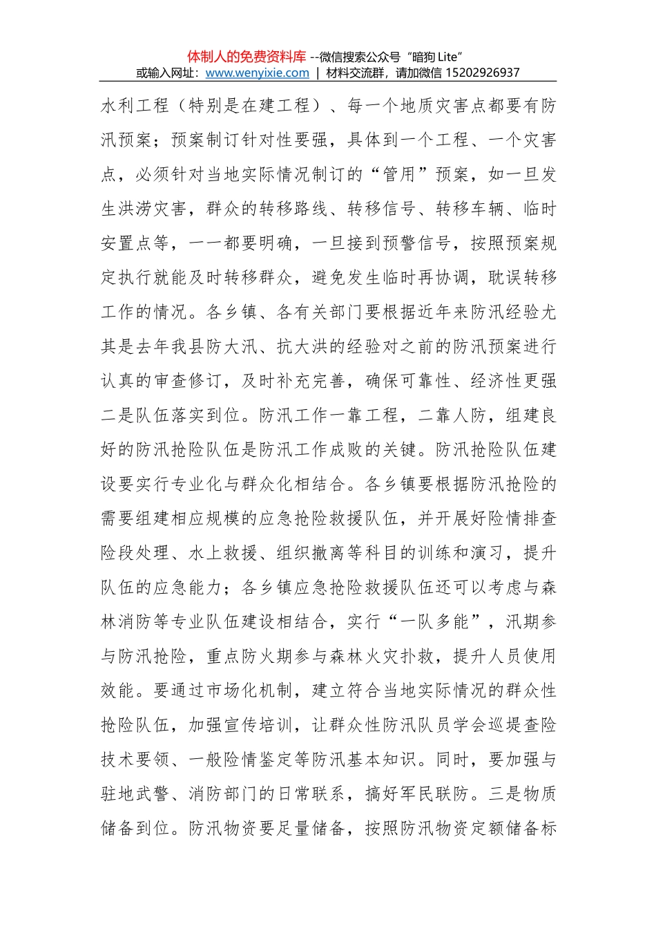 体制人的免费资料库 --微信搜索公众号“暗狗 Lite”或输入网址:www.wenyixie .com | 材料交流群,请加微信 15202926937朱明善在全县防汛工作会议上的讲话同志们:这次全县防汛工作会议是经县委、县政府研...