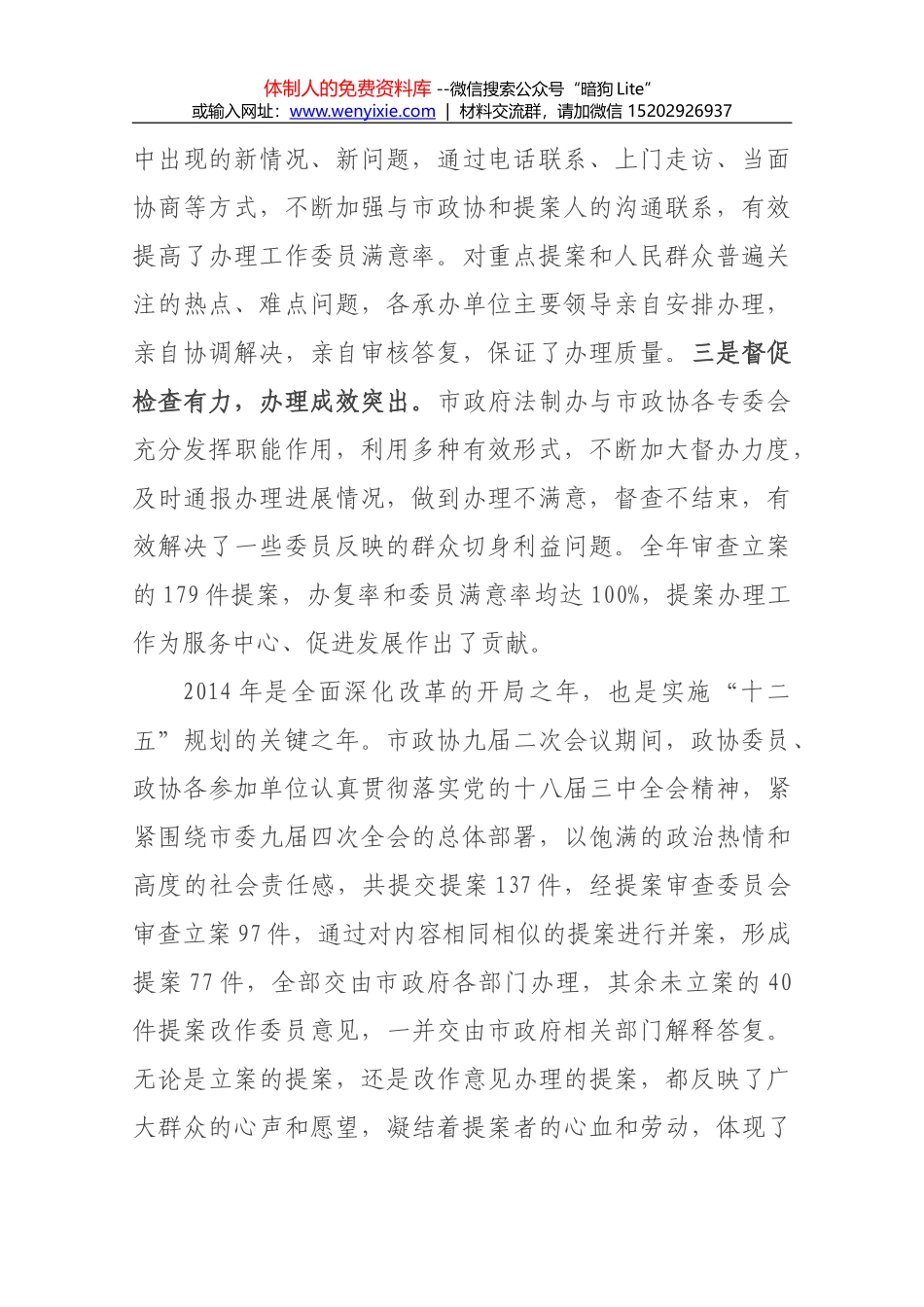 体制人的免费资料库 --微信搜索公众号“暗狗 Lite”或输入网址:www.wenyixie .com | 材料交流群,请加微信 15202926937在政协提案交办会上的讲话 市政协副主席 何秀伟(2014 年 4 月 22 日) 同志们...