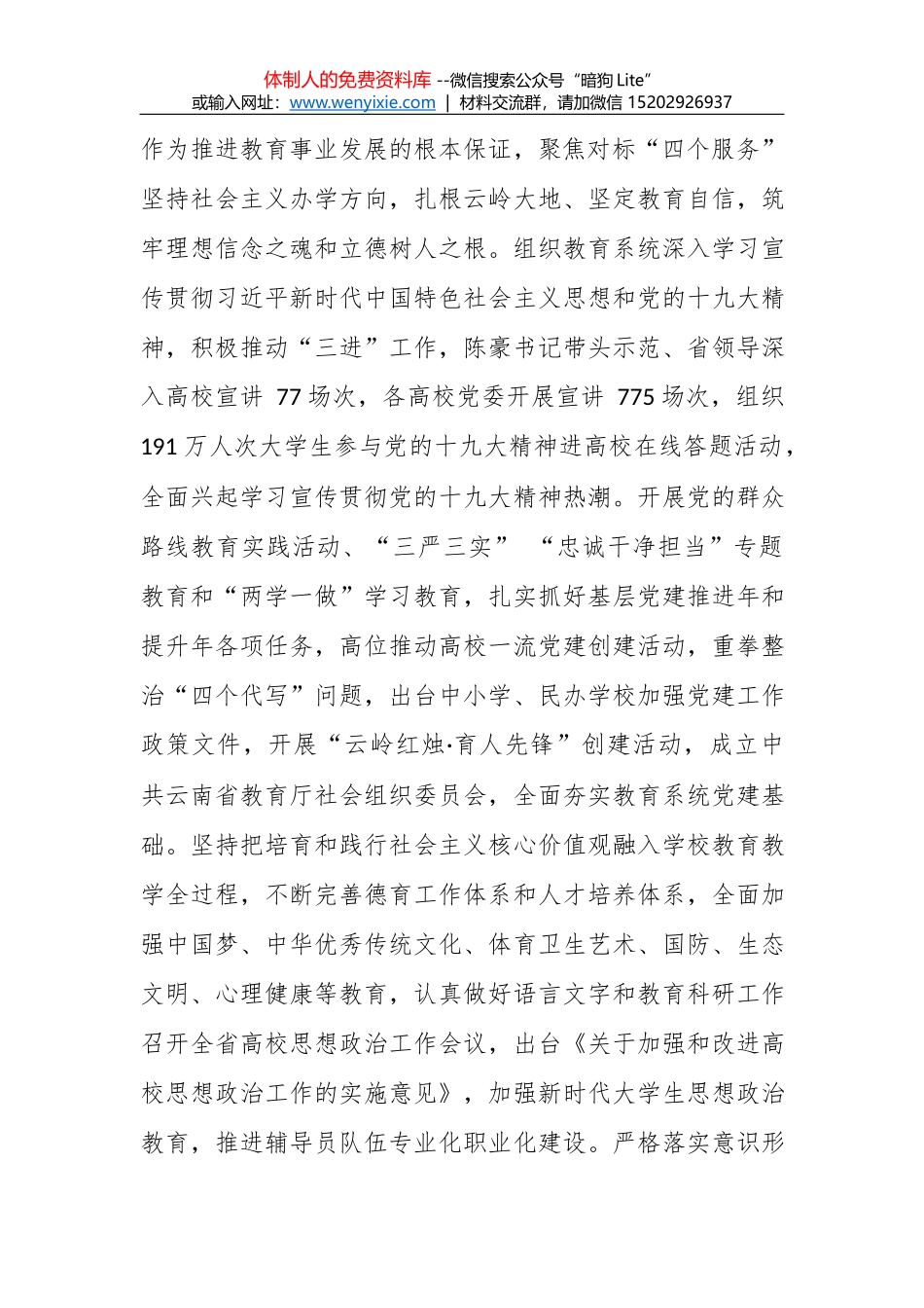 体制人的免费资料库 --微信搜索公众号“暗狗 Lite”或输入网址:www.wenyixie .com | 材料交流群,请加微信 15202926937在 2018 年全省教育工作会议上的讲话(2018 年 2 月 6 日)周 荣同志们: ...