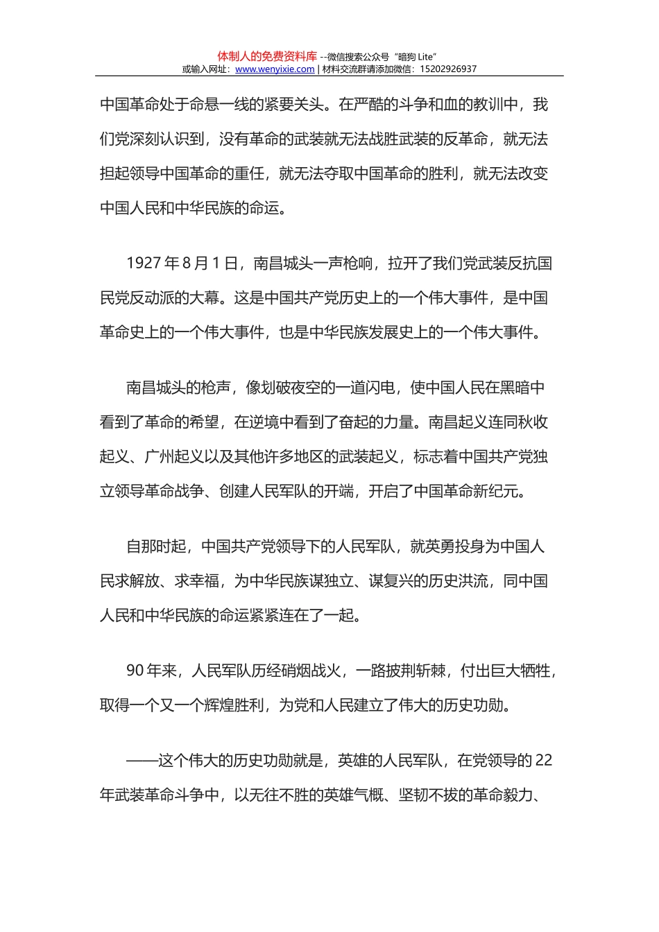 体制人的免费资料库 --微信搜索公众号“暗狗 Lite”或输入网址:www.wenyixie.com | 材料交流群请添加微信:15202926937在庆祝中国人民解放军建军 90 周年大会上的讲话(2017 年 8 月 1 日)习近平同...