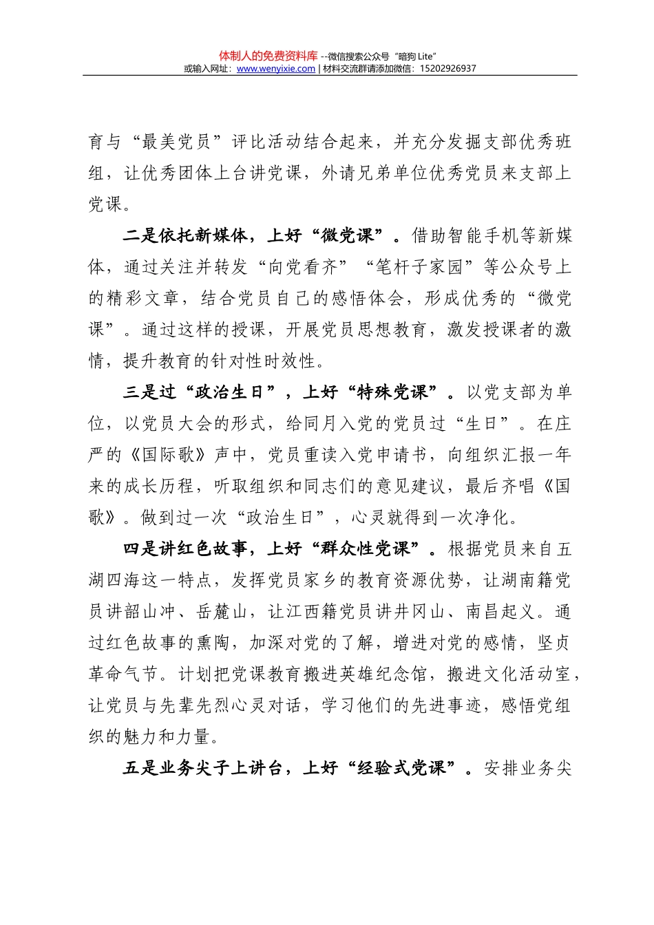 体制人的免费资料库 --微信搜索公众号“暗狗 Lite”或输入网址:www.wenyixie.com | 材料交流群请添加微信:15202926937本文系邮箱投稿,仅供学习参考,请勿照搬照抄! “我要上党课”实施方案为深入推进“...