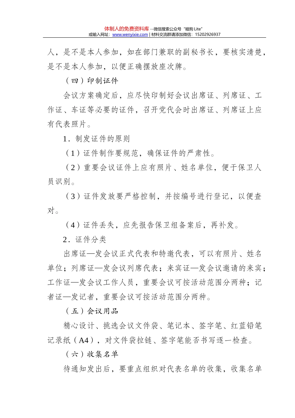 体制人的免费资料库 --微信搜索公众号“暗狗 Lite”或输入网址:www.wenyixie.com | 材料交流群请添加微信:15202926937会议接待工作要点清单党委机关会议是指党委召开的党代表大会、党委全体委员会、党委工...