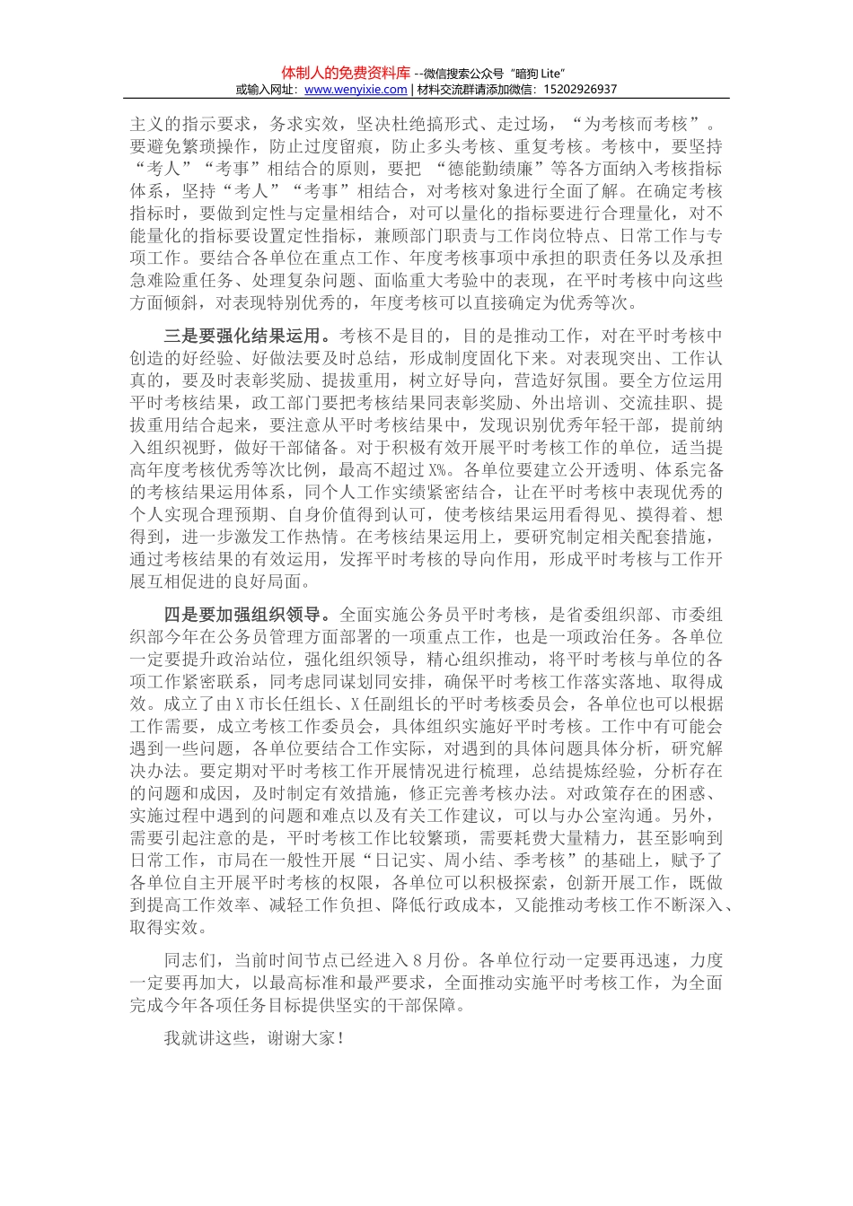 体制人的免费资料库 --微信搜索公众号“暗狗 Lite”或输入网址:www.wenyixie.com | 材料交流群请添加微信:15202926937在公务员平时考核工作部署会议上的讲话同志们:今天这次会议,主要是贯彻落实全市公务...