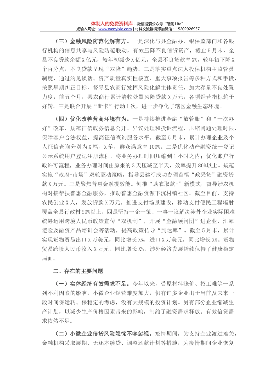 体制人的免费资料库 --微信搜索公众号“暗狗 Lite”或输入网址:www.wenyixie.com | 材料交流群请添加微信:15202926937人民银行 X 县支行 2021 年上半年工作总结2021 年上半年,在县委县政府的正确领导...