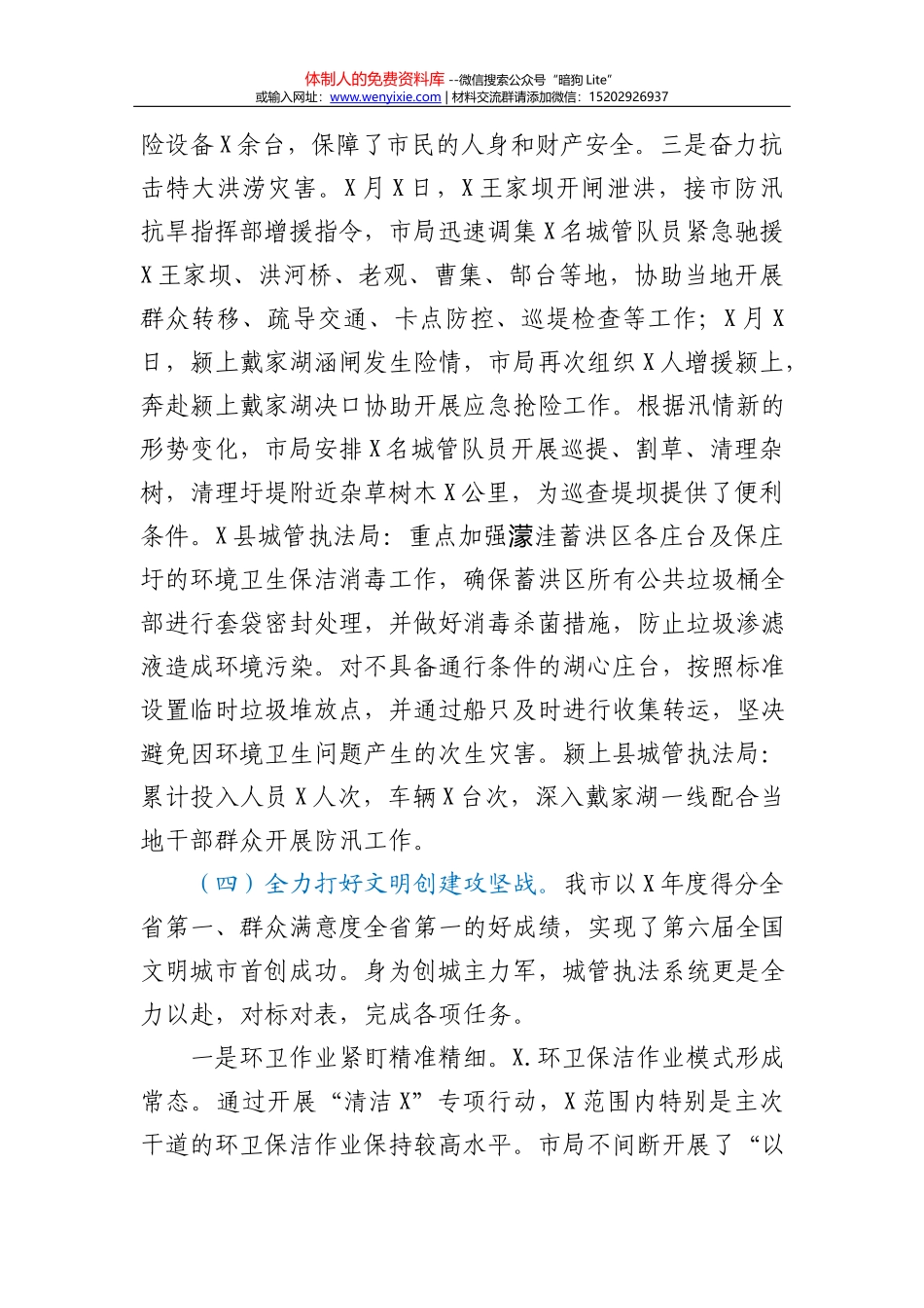 体制人的免费资料库 --微信搜索公众号“暗狗 Lite”或输入网址:www.wenyixie.com | 材料交流群请添加微信:15202926937在全市城管执法工作会议上的讲话我主要讲四个方面的问题:一、肯定成绩,不断提升新阶...